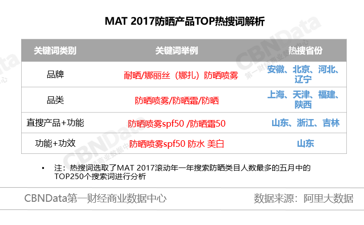 CBNData分析师对关键词类别进行了拆分,发现不论是按照品牌还是品类进行搜索,“防晒喷雾”这个概念已经深深地植入消费者的搜购意识。